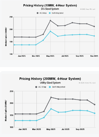 Within the same segment, self-integrated pricing reached $158/kWh, a $12/kWh or 6.8% drop since August. Energy storage prices in the segment peaked at $177/kWh in May.