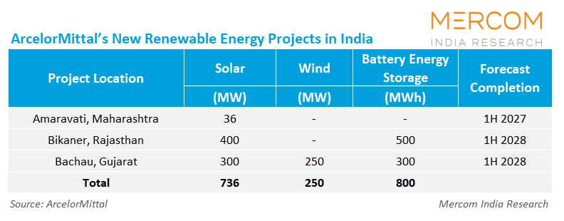 Luxembourg-based steel and mining company ArcelorMittal has announced it will set up three renewable energy projects in India totaling 1 GW of solar and wind capacity. The three projects are expected to cost $900 million.