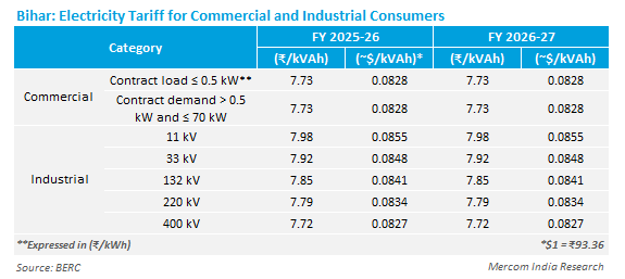 The Bihar Electricity Regulatory Commission (BERC) has largely retained retail electricity tariffs across consumer categories for the financial year (FY) 2026-27, while introducing targeted reductions and structural changes as part of a broader tariff rationalization exercise.