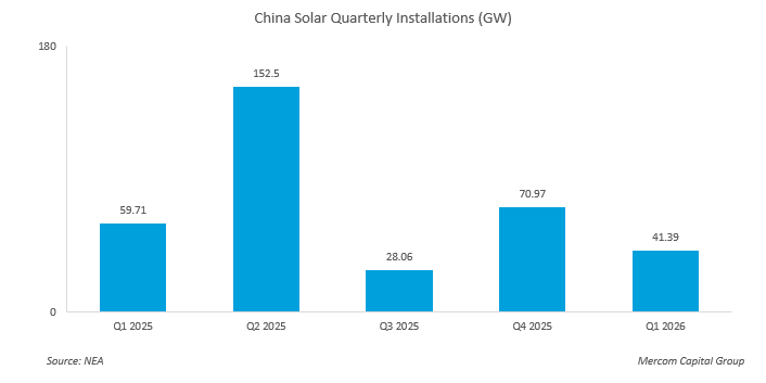 China expanded its installed solar power capacity by 41.4 GW in the first quarter (Q1) of 2026. On a year-over-year (YoY) basis, solar capacity addition dropped 41.7% from 70.97 GW.