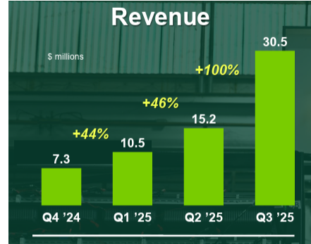 U.S.-based energy storage solutions provider Eos Energy Enterprises’ revenue reported a record revenue of $30.51 million in the third quarter (Q3) of 2025, a 3,500% year-over-year (YoY) increase from $854,000.