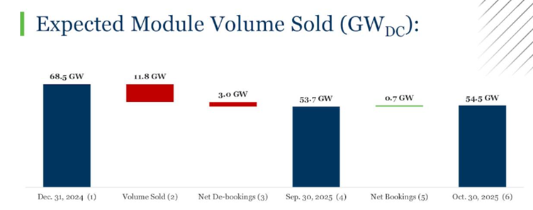 The company manufactured 3.6 GW of modules in Q3 2025, with 2.5 GW coming from its U.S. facilities and 1.1 GW from its international facilities.