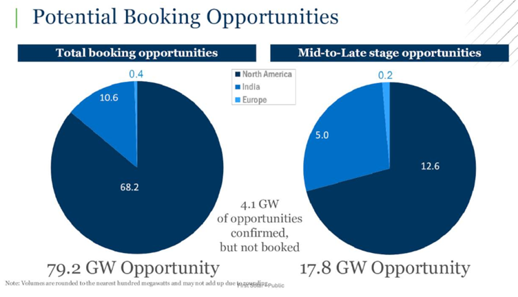 It terminated 6.6 GW of bookings under multiyear agreements defaulted on by affiliates of BP, a European oil and gas major, at a base ASP of $0.294/W.