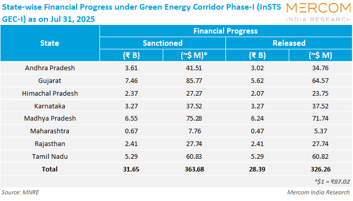 Four states have sought an extension until December 2025 to implement the Intrastate Transmission System Green Energy Corridor Phase-I (InSTS GEC-I).
