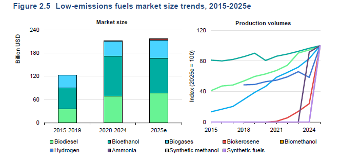 The market for low-emission fuels grew by an average of 7% annually in the past decade, reaching around $215 billion in 2025.