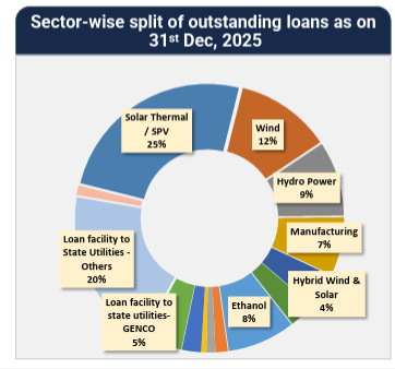 Of the total outstanding loans as of December 31, 2025, ₹254.01 billion (~$2.82 billion) was from the public sector, while ₹625.73 billion (~$6.94 billion) originated from the private sector. The private sector accounted for 71% of IREDA’s total outstanding loan book.