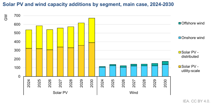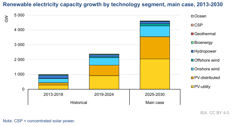 According to the IEA’s report, the pace of renewable additions between 2025 and 2030 is expected to double that of the previous five years (2019–2024). Solar systems, both utility-scale and distributed, will account for nearly 80% of total additions.
