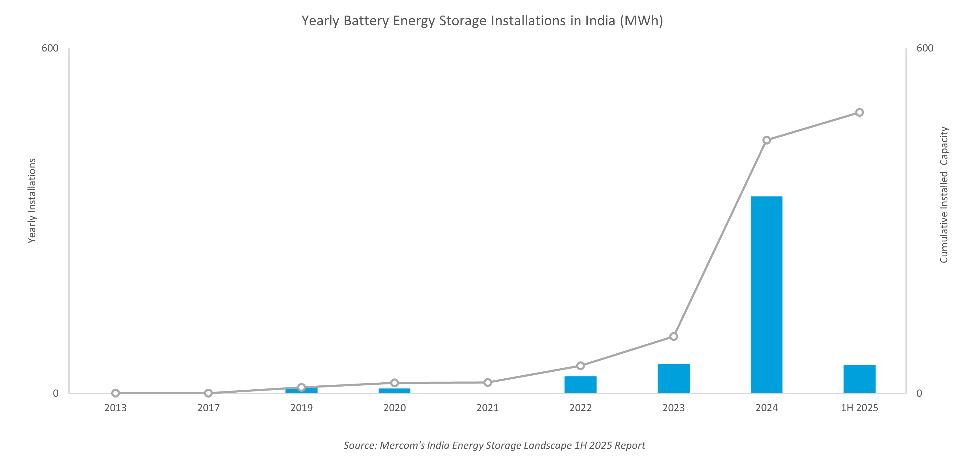 India Added 48.4 MWh of Energy Storage Capacity in 1H 2025