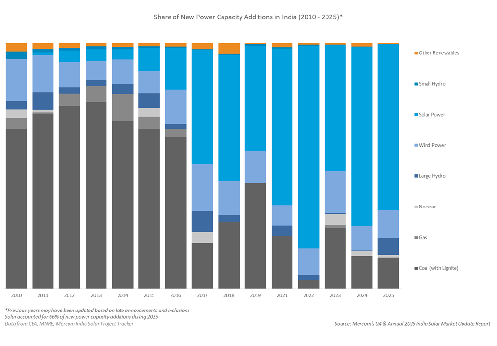 The fourth quarter (Q4) of 2025 capped the year with strong performance. India added 9.9 GW of solar capacity in Q4, up nearly 11% from Q3 2025 and about 21% higher than Q4 2024.