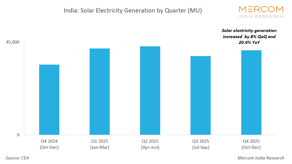 The combined impact of regulatory clarity on GIB-related constraints and the approaching ISTS waiver deadline led to a marked increase in commissioned capacity in Q4 2025, supporting higher solar power generation.