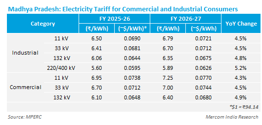 The Madhya Pradesh Electricity Regulatory Commission (MPERC) has approved higher tariffs for electricity consumers across all categories for the financial year (FY) 2026-27.