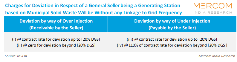 Charges for deviation, in respect of a general seller being a generating station based on municipal solid waste and without any linkage to grid frequency, will be as under: