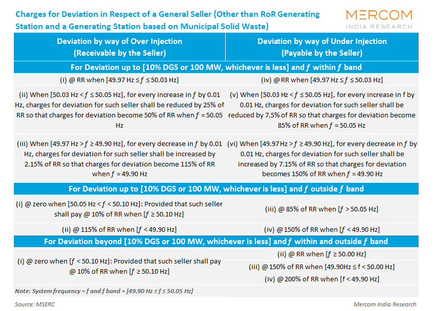 Deviation-general Seller (DGS) (in %) = 100 x [(Actual injection in MWh) – (Scheduled generation in MWh)] / [(Scheduled generation in MWh)].