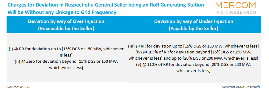Deviation charges, in respect of a general seller being a RoR generating station, without any linkage to grid frequency, are as follows: