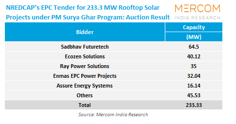 Sadbhav Futuretech secured 64.50 MW, the largest capacity among the winners. Ecozen Solutions won 40.2 MW, followed by Ray Power Solutions (35 MW), Enmas EPC Power Projects (32.04 MW), and Assure Energy Systems (16.14 MW).