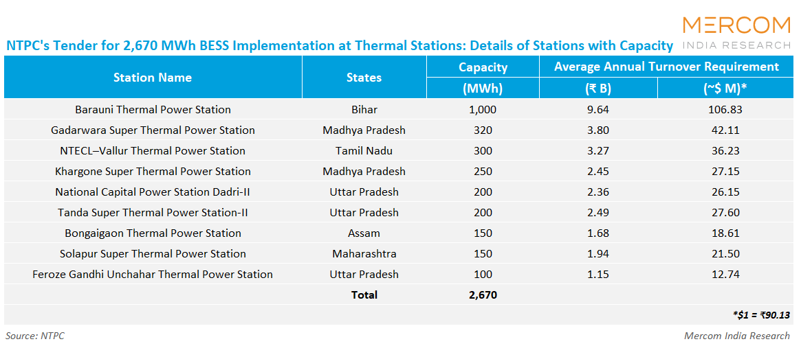NTPC has floated an engineering, procurement, and construction (EPC) tender to set up 2,670 MWh of battery energy storage systems (BESS) at nine of its thermal power stations across six states under Lot-2.