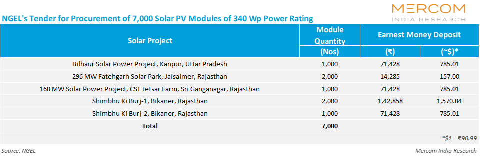 In December 2025, NGEL issued a tender for comprehensive operation and maintenance services for its 540 MW grid-connected solar projects in Nokhra and Devikot, Rajasthan, for three years.