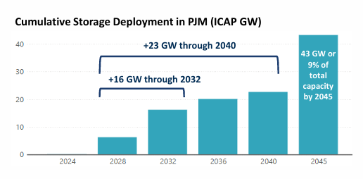 In the longer term, as renewable energy deployment expands, the value of storage will continue to increase through enhanced energy arbitrage and operational flexibility. By 2045, PJM is projected to rely on around 43 GW of battery storage, 40 GW of new gas capacity, and expanded renewable generation to maintain reliability and meet policy targets.