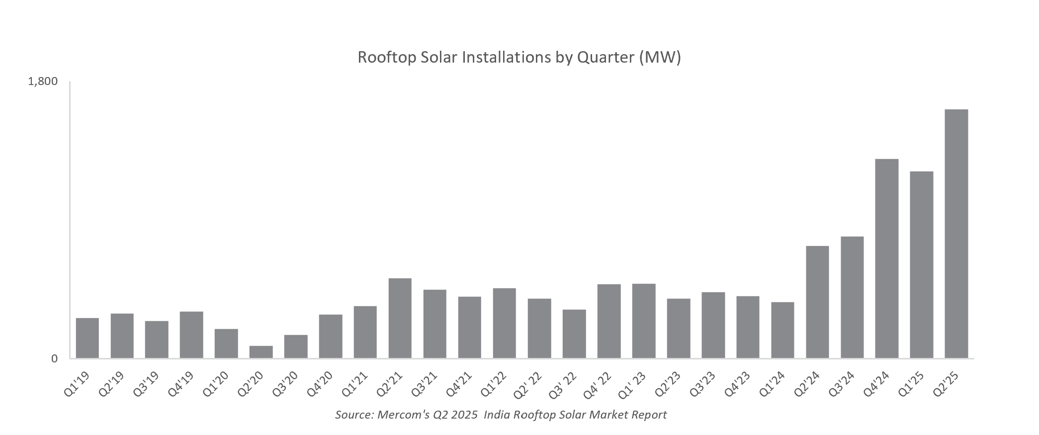MERCOM INDIA ROOFTOP SOLAR MARKET REPORT Q2 2025 – 1.6 GW INSTALLED IN Q2 2025