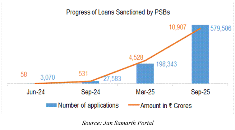 Public sector banks (PSBs) have approved more than 579,000 loan applications worth ₹109.07 billion (~$1.23 billion) under the PM Surya Ghar: Muft Bijli Yojana, as of September 2025, according to the Ministry of Finance.