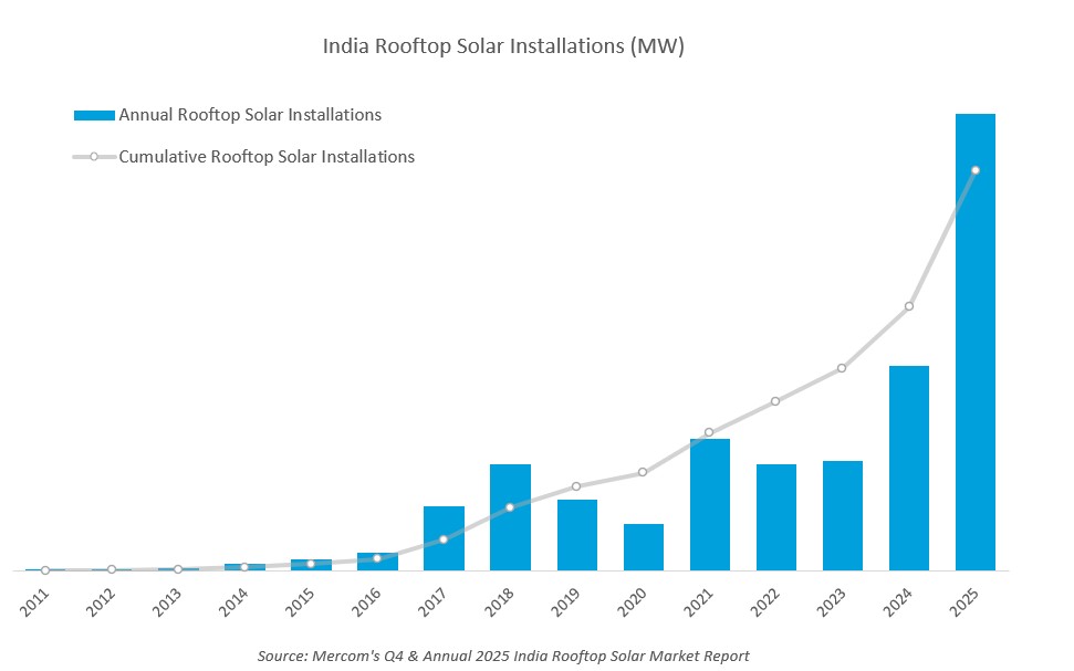 The Q4 & Annual 2025 India Rooftop Solar Market Report is 125 pages and covers all facets of India’s rooftop solar market. For the complete report, visit: https://www.mercomindia.com/product/rooftop-solar-market-report-q4-2025