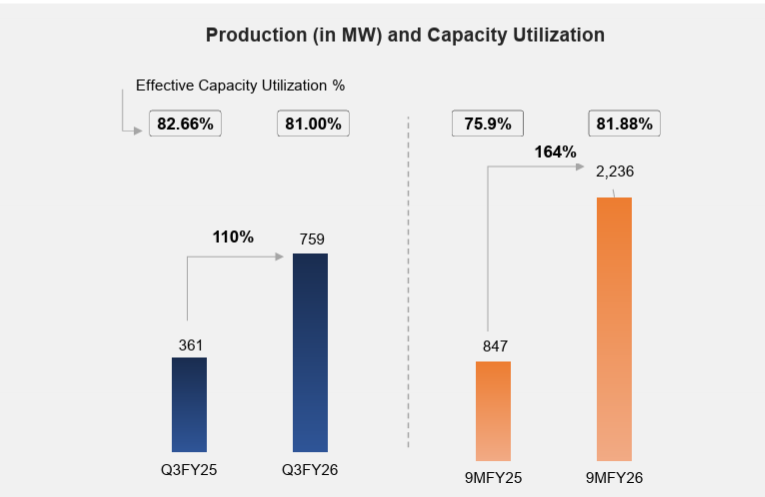 In Q3, Saatvik Green manufactured 759 MW of solar modules, a 110% YoY jump from 361 MW.