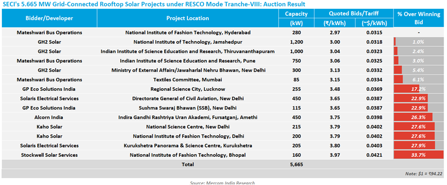 SECI's 5.665 MW Grid-Connected Rooftop Solar Projects under RESCO Mode Tranche-VIII: Auction Result
