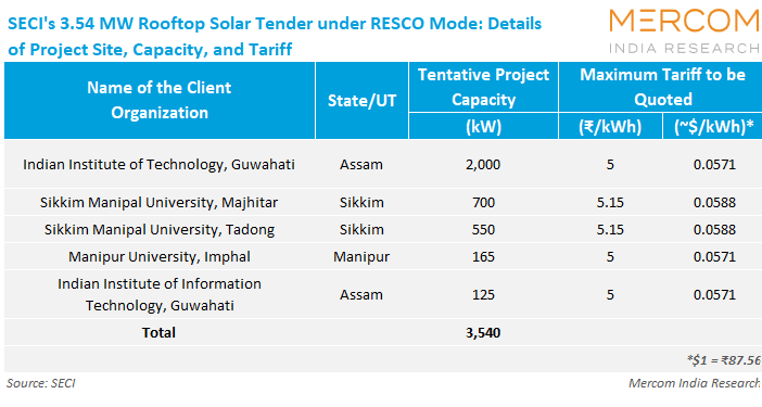 The Solar Energy Corporation of India (SECI) has issued a request for selection to set up 3,540 kW grid-connected rooftop solar projects in educational institutions in three states in the country’s northeastern region under the renewable energy services company (RESCO) mode (RTSPV-Tranche-II).