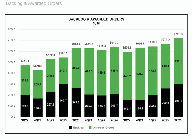 Shoals reported backlog and awarded orders of $720.9 million at the end of Q3, representing a 21% YoY increase, driven by growth in other international markets, which accounted for 11.5% of the total orders. Backlog orders consisted of $298 million in the quarter.