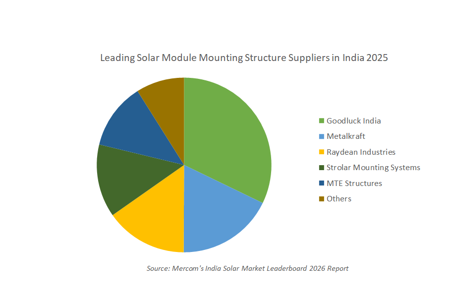 Goodluck India, Metalkraft, Raydean Industries, Strolar Mounting Systems, and MTE Structures were the top five module mounting structure suppliers to the Indian solar market in 2025, according to Mercom’s India Solar Market Leaderboard 2026 report.
