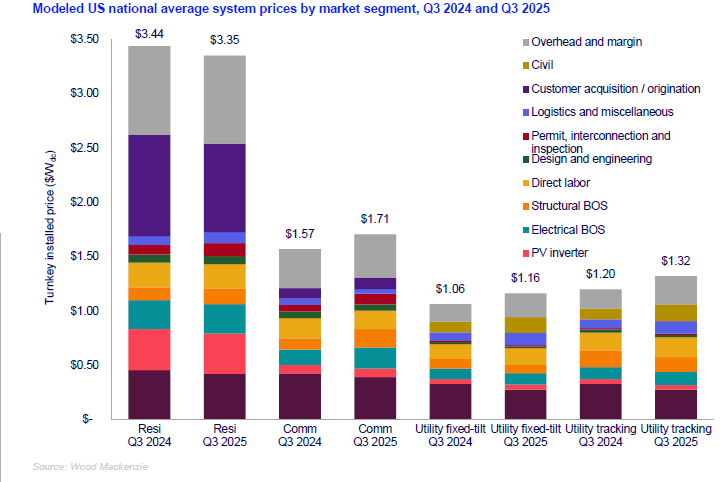 Labor costs also increased by 15% annually, and engineering, procurement, and construction overhead costs and margins jumped by nearly 40%. The surge in labor costs and EPC overhead costs reflected heightened project risk premiums amid policy and tariff uncertainty.