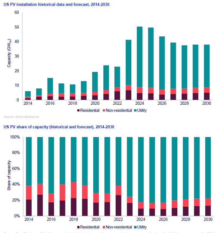 The report forecast 246 GW of solar installations between 2025 and 2030. It anticipates 41 GW of utility-scale solar projects to be constructed in 2025 and 197 GW of utility-scale solar to be built between 2025 and 2030.