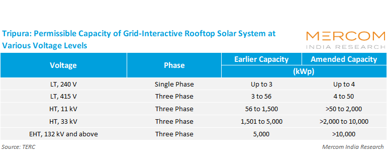 The Tripura Electricity Regulatory Commission (TERC) has capped the net energy credits at a maximum of 3.8 units per kW per day for solar systems installed by domestic, irrigation, and water works consumers.