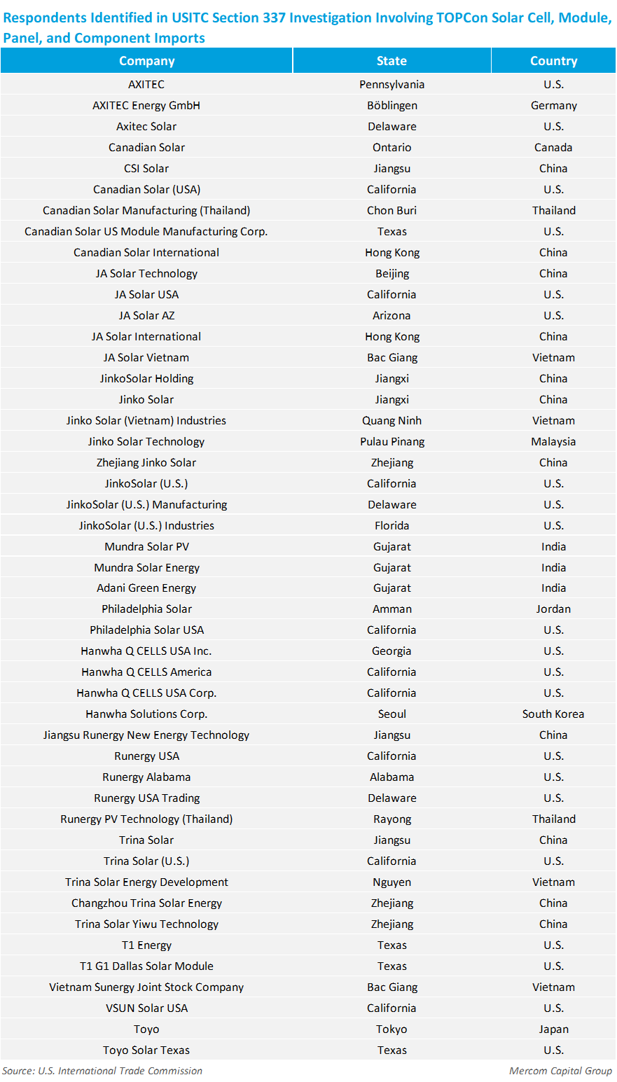 The USITC has also named T1 Energy, T1 G1 Dallas Solar Module, Vietnam Sunergy, VSUN Solar USA, Toyo, and Toyo Solar Texas.