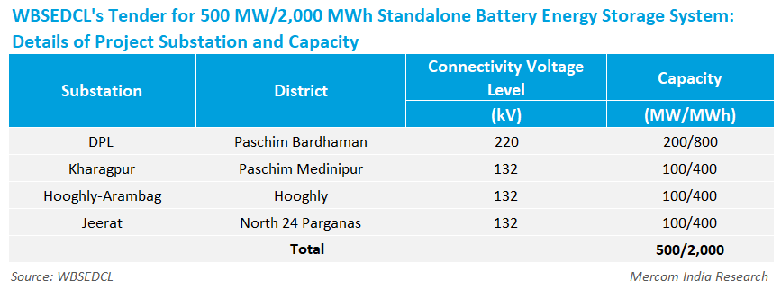 WBSEDCL will award the entire tendered capacity of 2 GWh for injection at West Bengal State Electricity Transmission Company’s four substations.